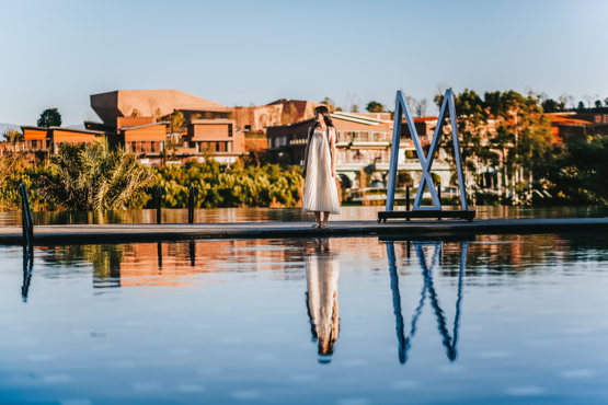 下榻东风韵景区内唯一的五星级酒店,由红砖和流畅曲线构筑的后现代建筑群张力十足,与周围的东风韵艺术小镇和秀美的湖岸及绵延的山势,形成独特又梦幻的交融景象。因为在景区内,我们可以避开白日喧嚷的人流,等待景区闭门谢客是静静欣赏红色美景。