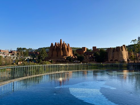 之后抵达弥勒,下榻东风韵美憬阁精选酒店。酒店置身由葡萄园、薰衣草地和大批后现代建筑构成的东风韵艺术小镇。夏日到访,葡萄园绿波万顷,薰衣草的芳香随风飘散;冬日之时,则可见薄云飘于畦田之上,桉树林为田野裁剪出的美妙天际线。引入国内外知名建筑艺术大师打造不同主题的博物馆、艺术馆、剧场等,就地选用建筑材料,将风格独特的建筑植入原始地貌,构成特色鲜明的建筑群落和艺术街区,开展艺术创作、文化交流、论坛、演出等活动,将质朴原始的生命力和创造力呈现给世界。