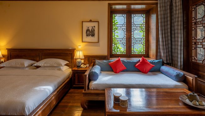 中藏结合风格的松赞奔子栏精品山居共建有10 间客房。精巧的酒店被传统藏式白房子环绕,远眺窗外,还能见到一处山顶小庙。那是村中人祈祷幸福的地方。驱车,或漫步,不知不觉中投入大山的怀抱。溪水清澈灵动,原始林森茂密幽深,藏族村落美丽宁静,庙宇承载着幸福——这难道不是另一个寻觅已久的香格里拉。