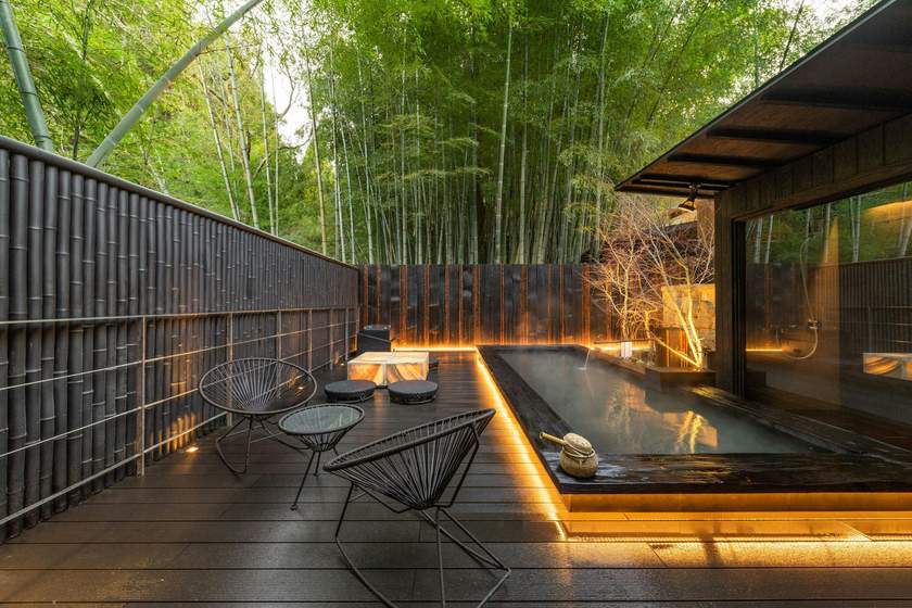 酒店整体呈现传统和式设计风,以风吕、庭园、回廊组成,这里有12间不同布局的独栋私汤别墅,各有内汤和露天风吕。除了客房内的独立风吕,还设有四个露天风吕,此外,酒店还设有一个名为「天空之桧风吕」的独立风吕,风吕位于高4米的位置,客人会有在天空浸浴一样的奇妙感觉。