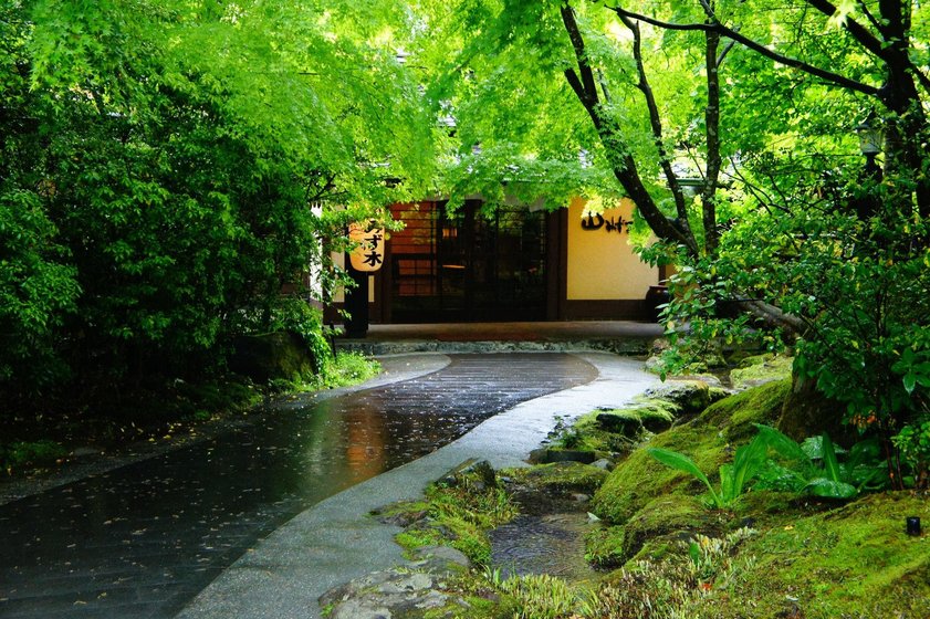 秘境白川源泉竹笛山庄位于九州岛的温泉乡黑川温泉,拥有阿苏山的壮丽美景,还能享受恢复健康的温泉浴。客房模仿传统农舍打造,浴场泉水引自旅馆私有的温泉源泉。这家位在竹林的温馨日式旅馆,让旅人远离车水马龙的喧嚣,在庭院深深的竹林秘境与独天独厚的挂流源泉,享受禅式 Spa 按摩,品尝以九州岛珍馐入菜的怀石料理,在这个僻静之处远离尘嚣。
