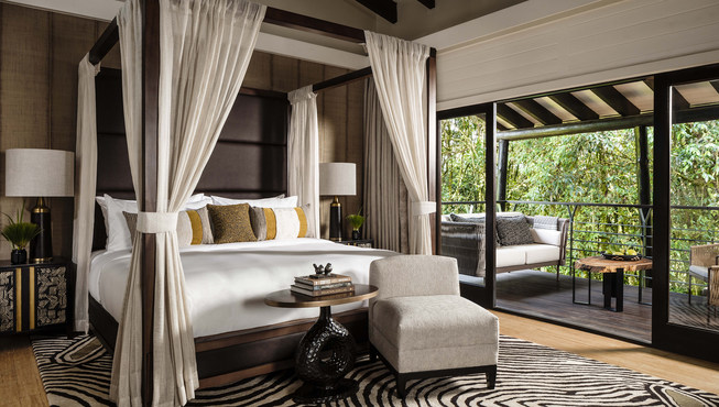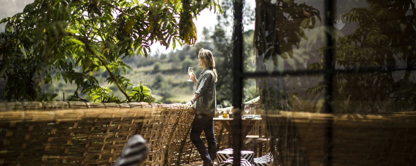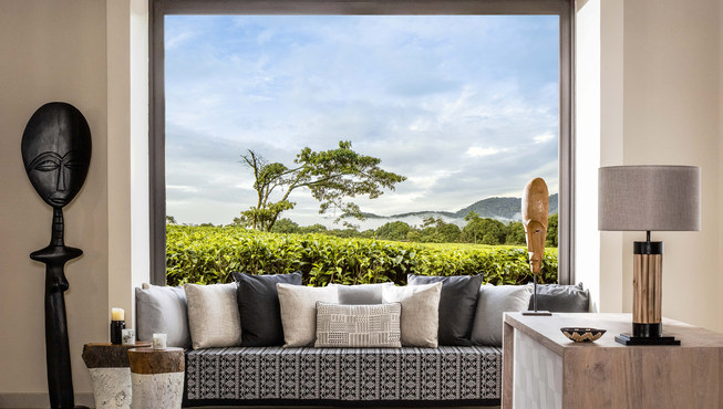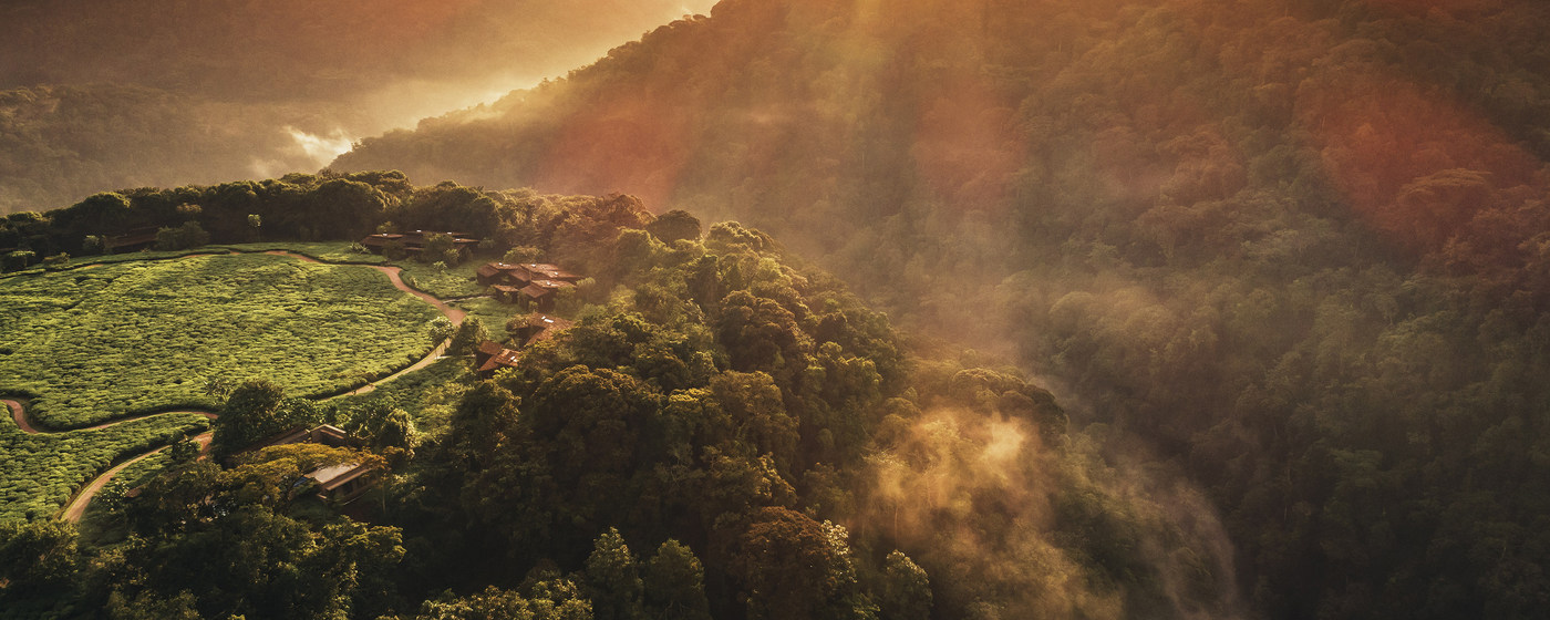 赞那度精选卢旺达奢华精品酒店,One&Only纽恩威小屋毗邻古老的热带雨林,坐落在郁郁葱葱的绿色植物种植园内。