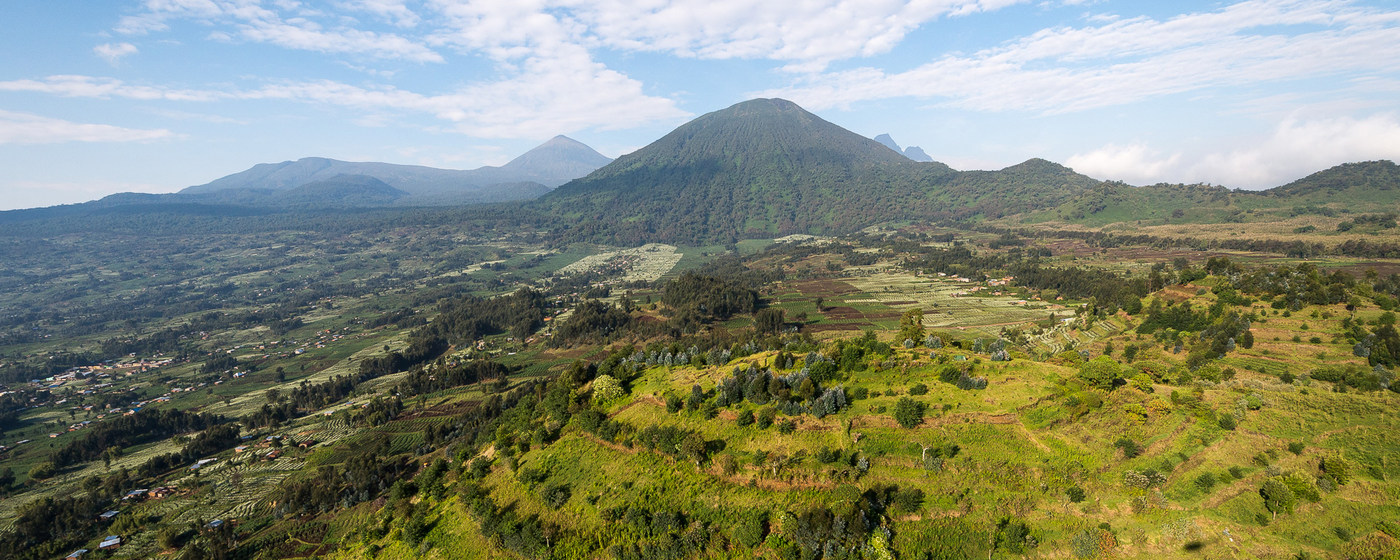 Wilderness Safaris Bisate Lodge 毗邻火山国家公园(Volcanoes National Park),Lodge 位于一个被侵蚀的火山锥的天然圆形剧场,身在 Lodge 内即可观赏壮观的火山景色。在火山国家公园内,您还可以偶遇山地大猩猩。