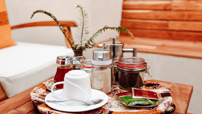 清晨起床,纽恩威森林国家公园独特的地理位置造就了优质的咖啡豆。一边听着卢旺达咖啡豆的故事,一边静等一杯手冲蜂蜜咖啡的“诞生”。