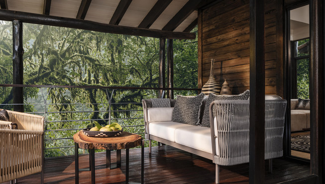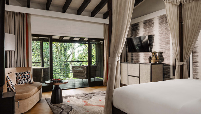 拥有6间豪华别墅与森林连接,别墅内一应设施俱全,私人露台即可观览卢旺达丛林景致。