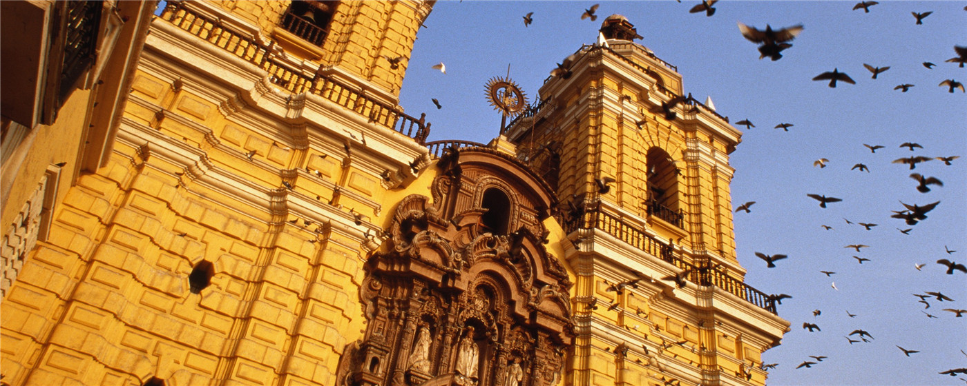 返回利马市区,来到利马的发祥地和核心-武器广场,这个古老的广场已经被联合国教科文组织宣布为世界历史文化遗产之一。周围环绕的大教堂建于1654年,它华丽精美的木阳台,银饰祭坛周围精致的木雕。墙上的镶嵌的壁画讲述了皮萨罗(Pizarro)和利马这座城市的关系。在广场周围我们也可以看到秘鲁政府宫、主教座堂、总主教宫、市政宫与协和宫。之后来到圣弗朗西斯科修道院,这座修道院以其地下墓穴和藏书室文明,藏书室中有上万部古卷,有些成书于西班牙殖民时期。这所修道院也是利马保存最好的殖民地早期的宗教建筑,基本保留了初期的巴洛克风格。