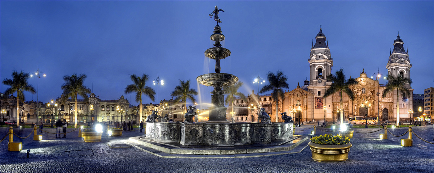 来到武器广场,在广场的周围我们可以看到秘鲁政府宫和教堂。