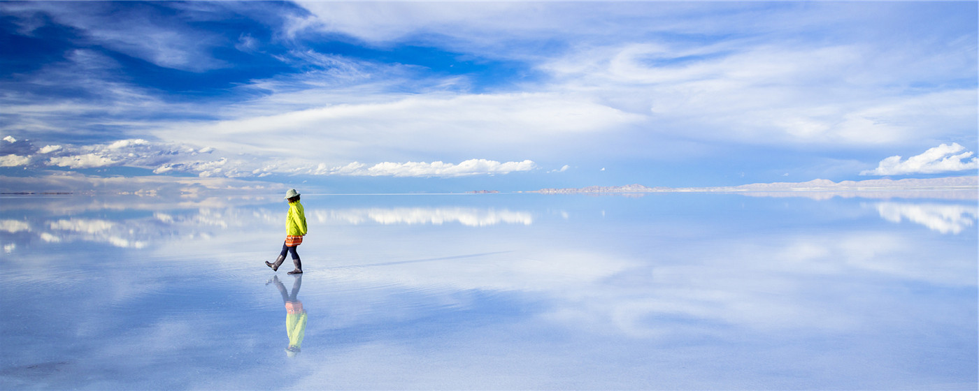 乌尤尼是世界上最大的盐沼,面积达九千多平方米,在太空中都能用肉眼观看。在雨季地面积水后,这里呈现出无边无际的“天空之镜”,只凭这一池湖水,就有无数人将玻利维亚列为此生必去的国家之一。