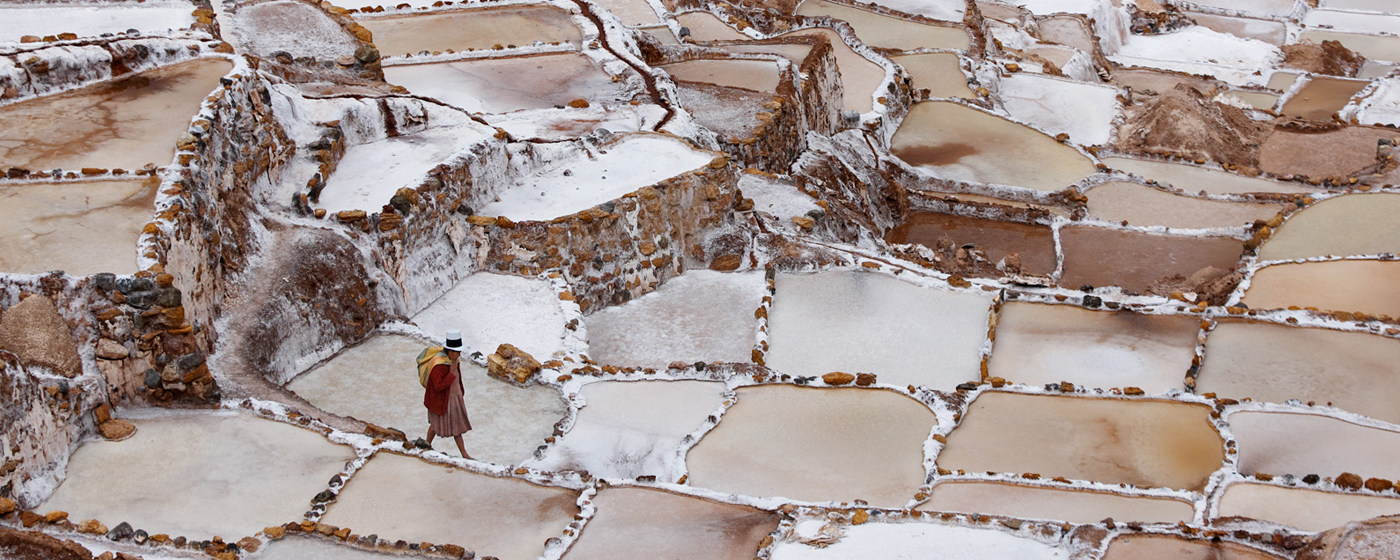 马拉斯古盐田似梯田般的方塘,如今仍然延续着印加时期制盐的传统。这座盐矿山曾一度是安第斯山南部最大的盐产地。