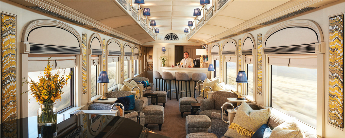 这辆装潢华丽的列车上还有一个室外观景台,可以眺望远处美丽的小镇。