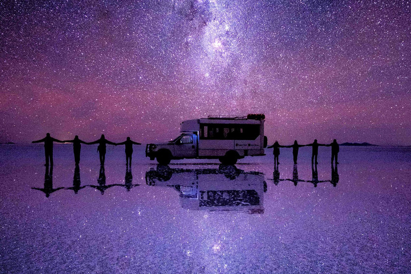 乌尤尼是世界上最大的盐沼,面积达九千多平方米,在太空中都能用肉眼观看。雨季地面积水后,呈现出无边无际的“天空之镜”。