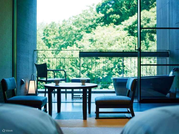 即使是最简单的客房也配备了起居室、卧室、室内木制浴室和修剪整齐的私人日式花园,花园内种植着红叶枫树并享有山景。套房里则私享有蒸汽桑拿浴室、木制露台和由天然泉水供应的个人露天石浴。