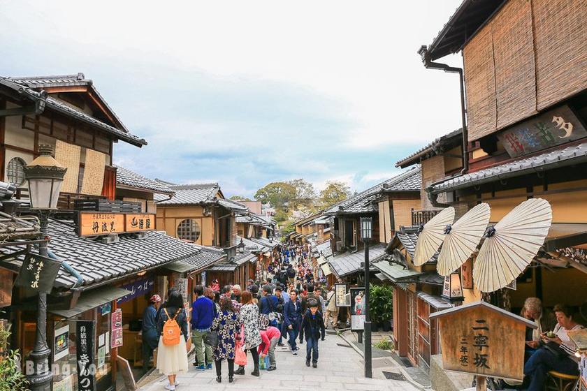 游玩结束后前往京都(车程约50分钟),游览世界文化遗产——清水寺,沿着三年坂二年坂悠闲散步商店街,然后打卡京都著名的花街——祇园。