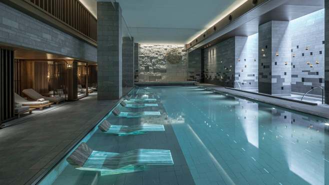 室内泳池旁还有露天按摩浴缸,四周竹林蓊鬱就像座小森林,也是一处绝佳的赏星地点。除此之外,饭店的KADAN SPA用的尽是世界各地的顶级精品,甚至还有一座能加速新陈代谢、强化SPA 效果的岩盘浴。