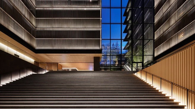 进入酒店之后,迎面映入眼帘的是简洁,大气,规整立体的阶梯,就如同京都的“沉稳”“素朴”一样,从踏入THE THOUSAND KYOTO开始,伴着淡淡的木香,宽广的空间渲染下仿佛进入了一个不受外界喧闹所干扰的“神圣”领域。