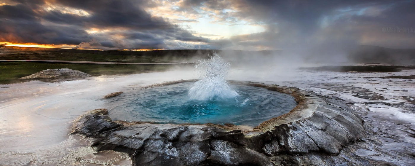 冰岛最伟大壮观的自然景观——盖策尔间歇喷泉。整个区域在一片广袤的地热区之上,四处分布着冒着泡的颜色各异的泥浆池,发着嘶嘶声的蒸汽喷口。