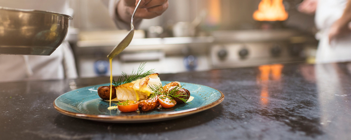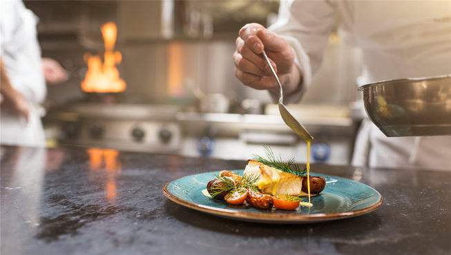 每一道菜都凝聚了餐厅厨师精湛的手艺和新鲜的食材,我们将在这里享用五道式高级料理作为欢送晚宴。