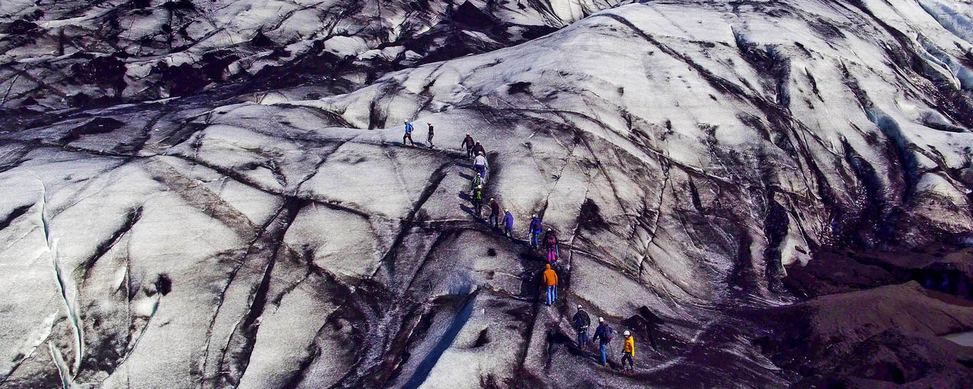 您将来到索尔黑马冰川(Sólheimajökull)的广袤冰原,在冰川上体验徒步探索冰川裂缝,感受大自然的震撼。