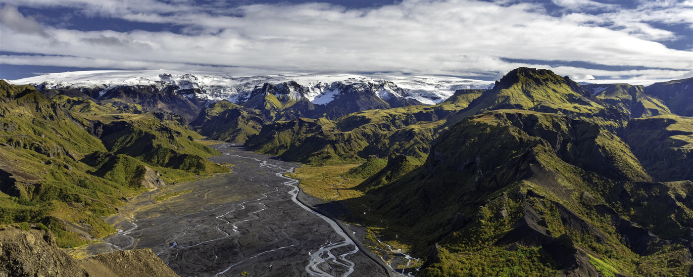 索斯默克(Þórsmörk)是埃亚菲亚德拉冰盖(Eyjafjallajökull)和米达尔斯冰盖(Mýrdalsjökull)下的一个美丽的绿色山谷,以北欧神话中的雷神托尔命名。