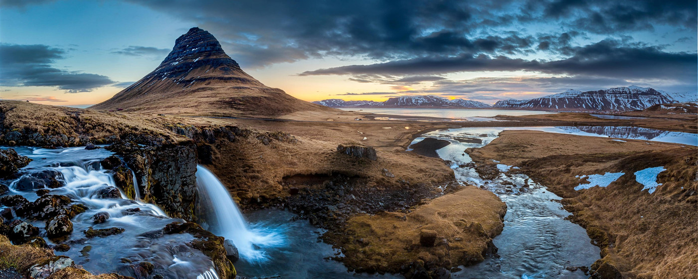 您将穿越Eldborg火山口前往半岛北部的Stykkisholmur渔村,在这里漫步感受小渔村的迷人。然后,驱车直奔Grundarfjordur小镇,从这里可以看到冰岛最具标志性的基尔丘山(Kirkjufell),也就是大家耳熟能详的草帽山(又称教会山),草帽山各个部分的完美组合成功地使它脱颖而出。其可谓一座360°无死角的拍照胜地,山上景色极具中土世纪色彩,两个生动如画的Grundarfoss和Kirkjufellsarfoss瀑布直流而下,充盈着蜿蜒在山脚的清透溪流,组成一幅绝美的世外桃源图。