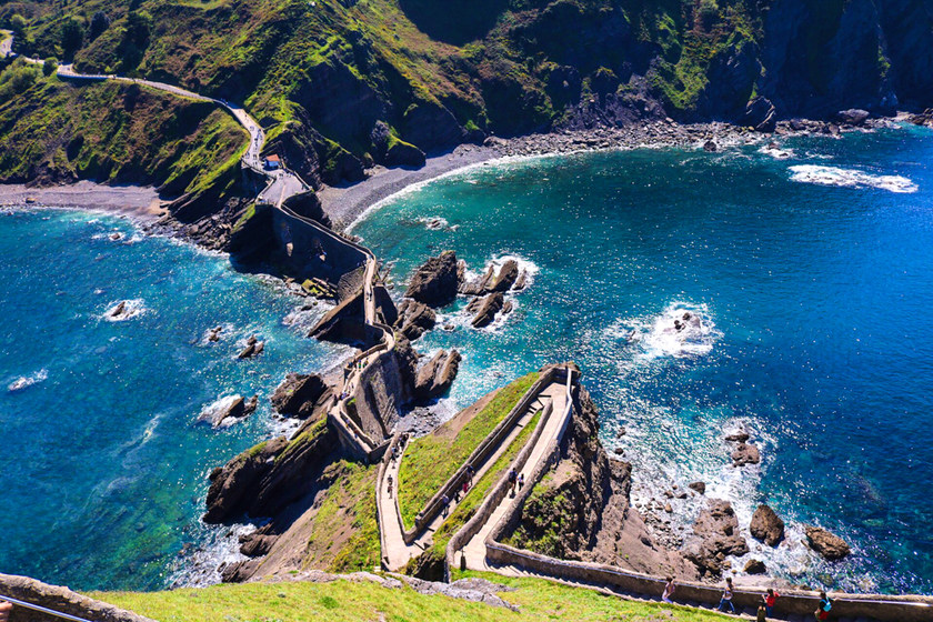 上午前往美剧《权力的游戏》中“龙石岛”的取景地,位于西班牙的巴斯克地区。露出海面的细长山脊,远望真的如一条盘踞的巨龙!小岛通过一条蜿蜒的石桥与大陆相连,岛顶矗立着一座名为圣胡安的小教堂。抵达那里,需要攀登200多级的石阶。站在岛顶,你可以欣赏到比斯开湾的壮丽海景。