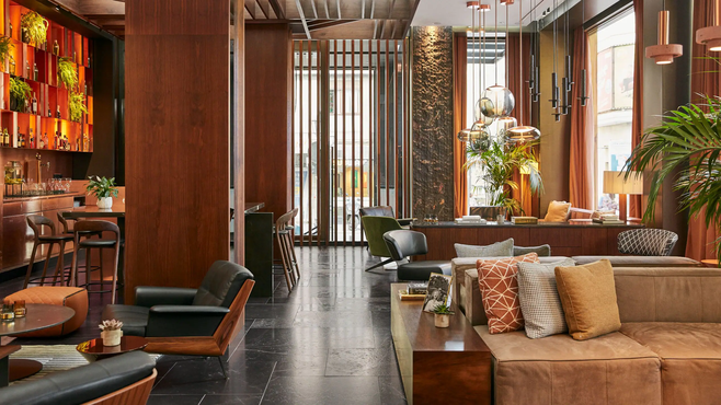 大量运用欧洲胡桃木、西班牙阿拉贡大理石、皮革,客房以湖泊色调为主,搭配黑色大理石浴室,营造低调奢华的氛围。共175间客房,含22间套房。基础房24㎡起,套房多带阳台或露台,露台套房拥有20㎡+私人露台,可赏城市景观。融合西班牙传统材质与纽约摩登风格,适合追求设计感与城市探索的旅客。