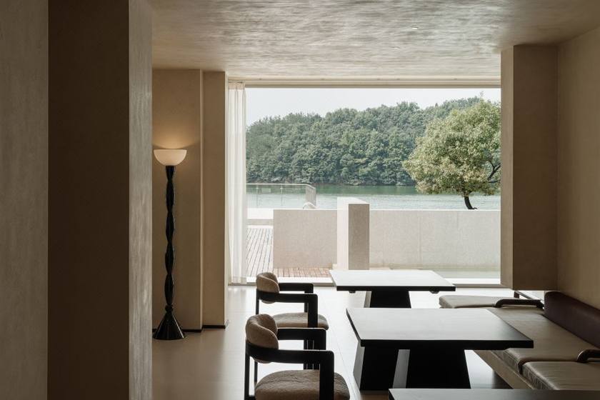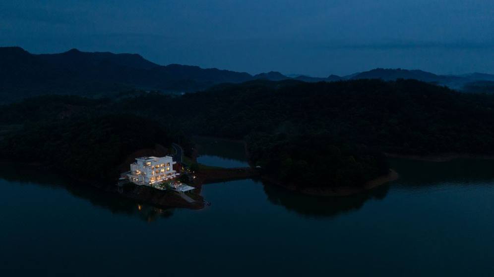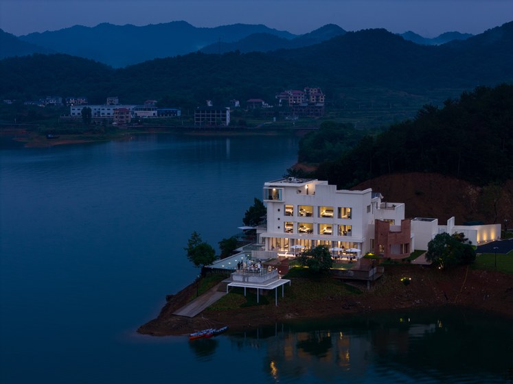 “ 双子”型酒店咏归川·武宁西海于西海湖畔有「临海私岛」与「夯土野宿」两处落址: