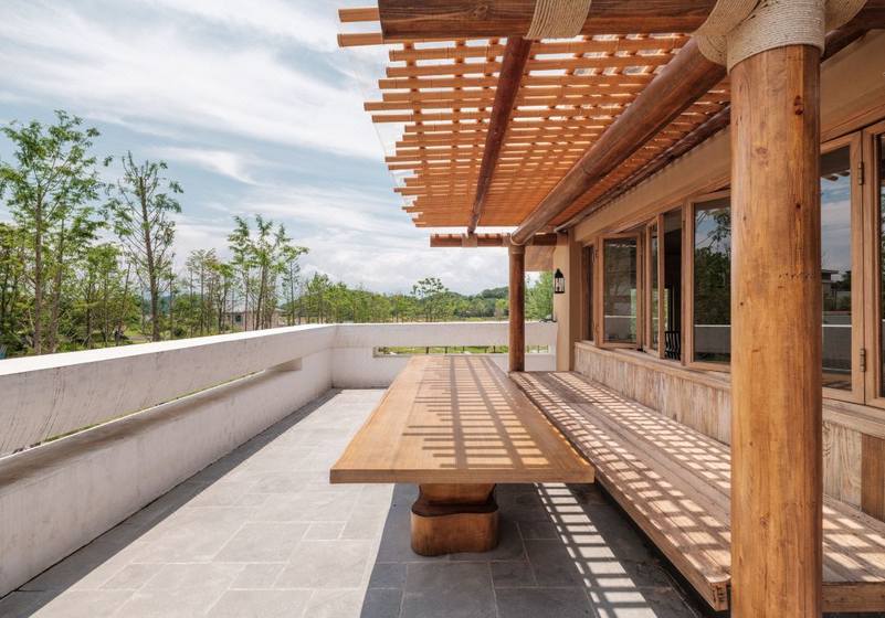 夯土野宿——夯土野宿则与西海保持着克制的观望以扎根地方的姿态,并将夯土元素保留,嵌入所在原生村庄的肌理,展现为一种西海过去的古朴状态,是乌篷船下摇摇碎碎的月光。