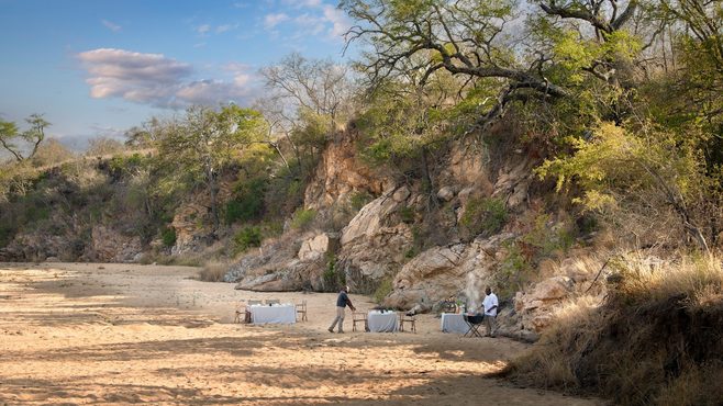 这座私密的营地掩映于树冠之下,靠近克鲁格国家公园未受侵扰的边缘地带,既隐秘又开放,仿佛置身于自然之中。营地仅有九间帐篷套房,掩映于树林之中,与周围环境融为一体:僻静、充满灵性,如同头顶的枝叶般融入荒野。